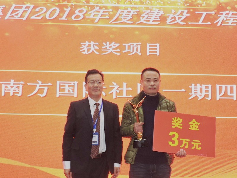 “2018年度/結(jié)構(gòu)優(yōu)質(zhì)工程/項(xiàng)目金獎”:“北洋橋舜安碧水文化體育活動中心1#樓”;頒獎人:集團(tuán)公司執(zhí)行總經(jīng)理蔡建華